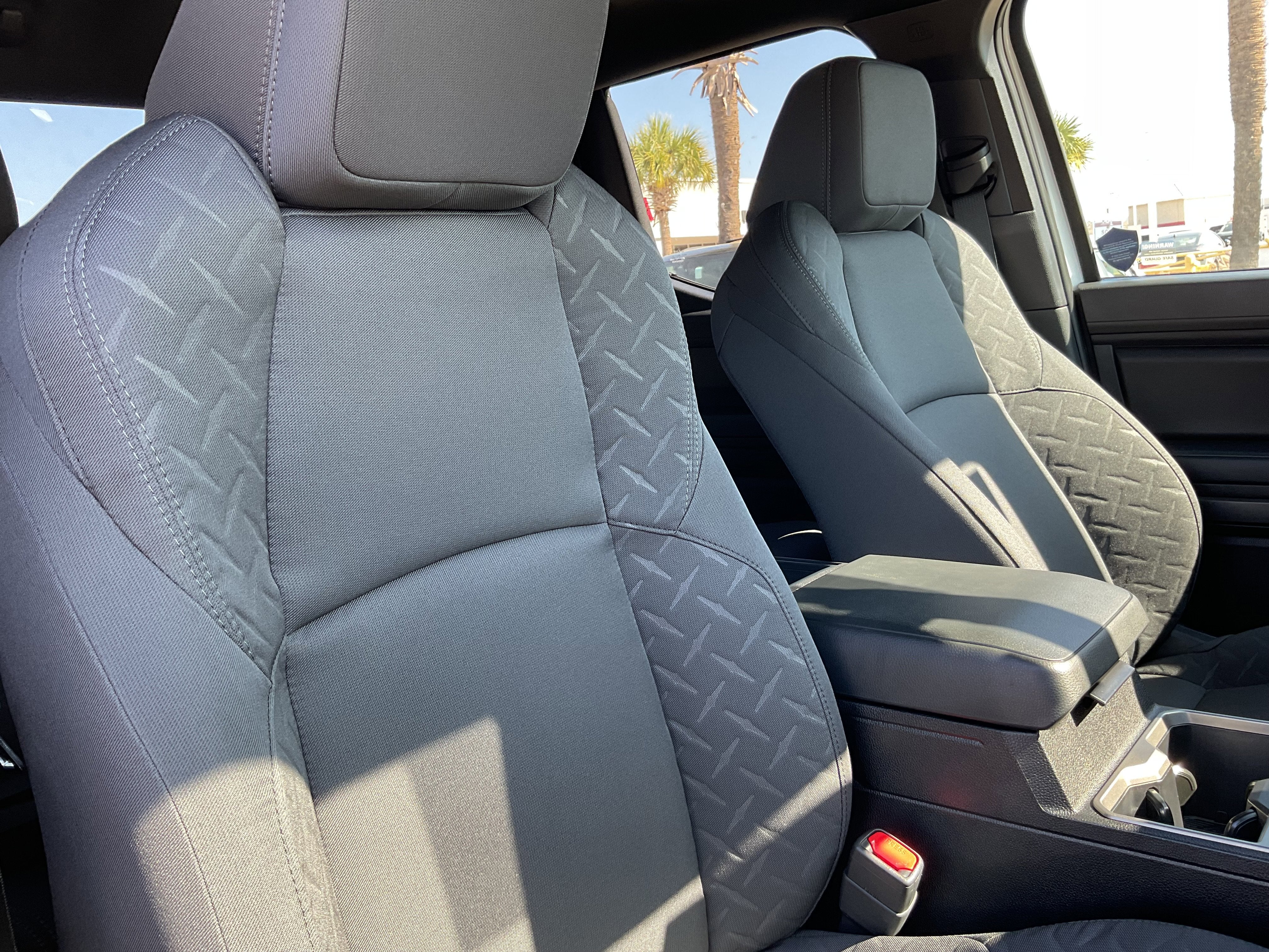 - Fabric-trimmed seats; 6-way manually adjustable driver and front passenger seats with 2-way power-adjustable lumbar support on driver's seat only