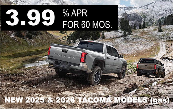 3.99% APR FOR 60/MO ON NEW 2025 & 2026 TACOMA MODELS